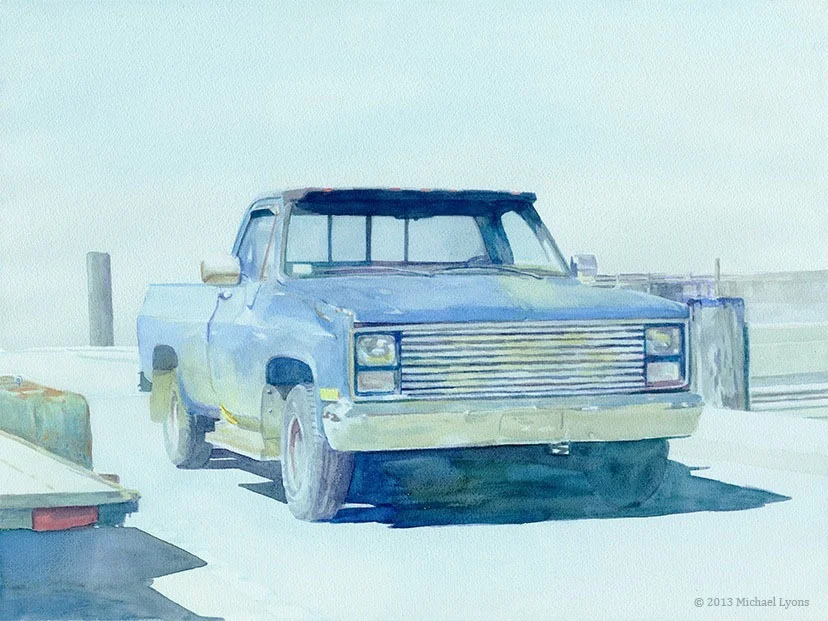Pick-up at the Pier 22" x 30" watercolor on canvas